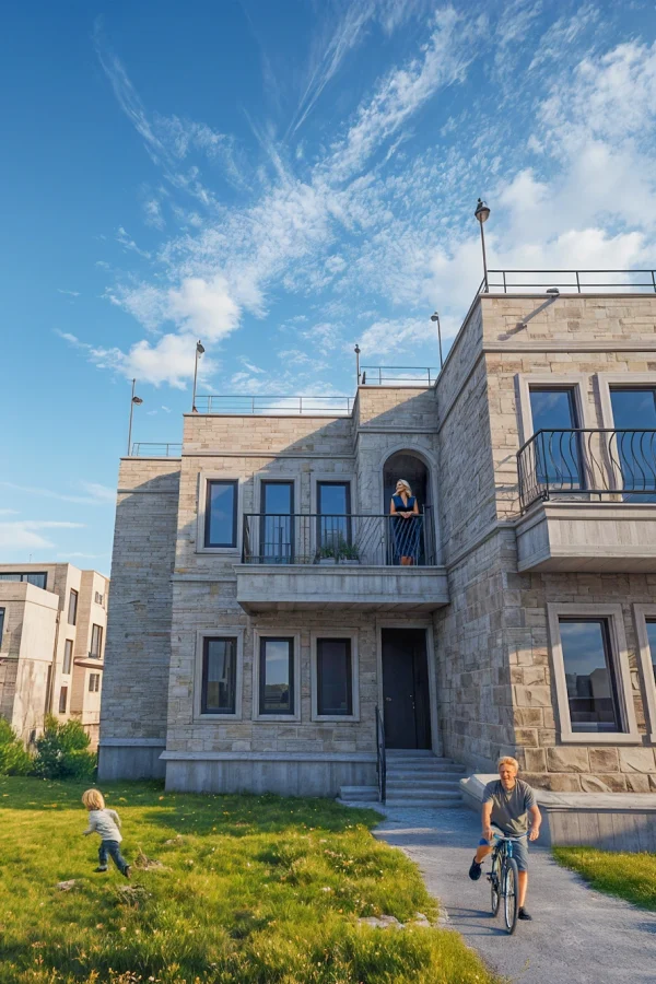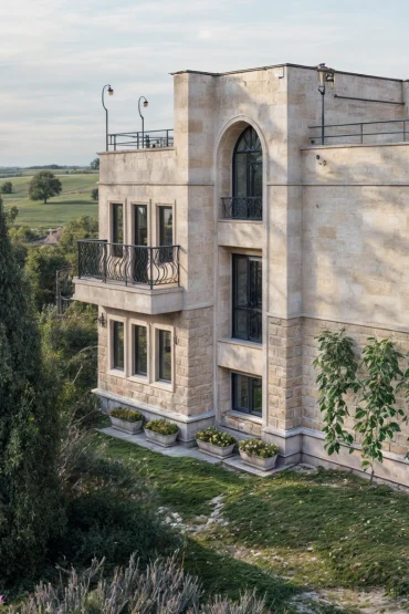 Briket ve doğal taş kaplama cephe, traverten kaplama döşeme, ahşap kaplama tavan uygulamaları ile geleneksel mimarinin mistik atmosferini yaşarken dairenizin içinde yer alacak modern donanımların sağladığı lüks ve konfor duygusunu hissedeceksiniz.